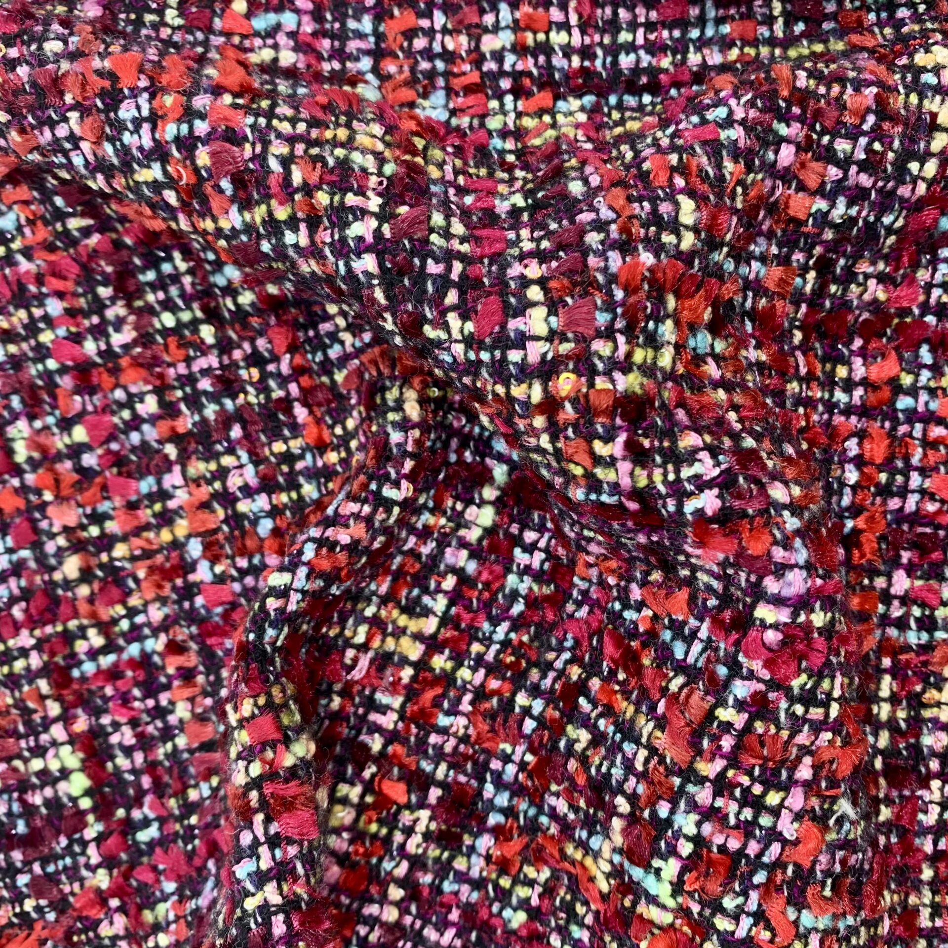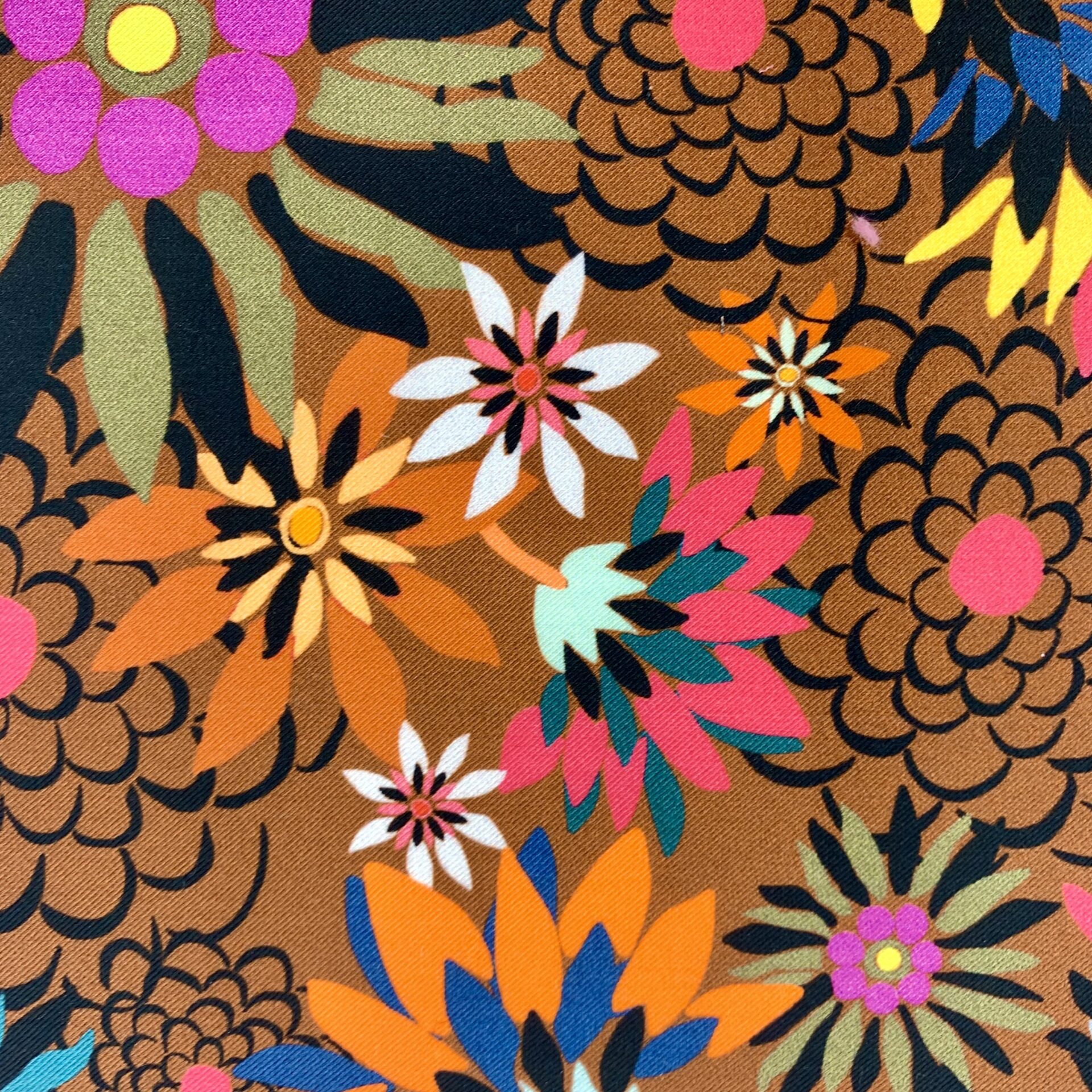 Die Kollektion ist geschmückt mit blumigen Satins in schimmernden Farben, kombiniert mit kühnen geometrisch gemusterten Twills.